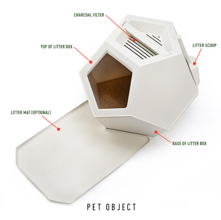 Introducing Pet Object Litter Box, a functional yet attractive litter box that’s designed with your cat and your home in mind. The front entry allows your cat to transition in and out with ease, and the enclosed design hides litter and messes. Plus, the top of the litter box is removable making it easy to clean and it houses a charcoal filter to help mask odors.